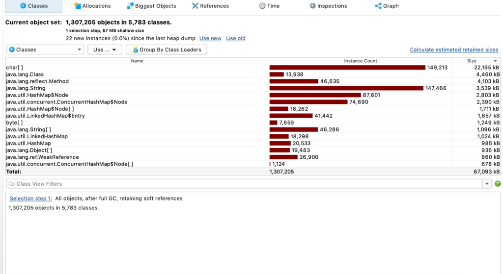 On local executions, I have encountered a memory problem that was little bit strange because during jprofiler analysis and when controlling the latest branches, I only saw spring boot beans and our temp local data which should be deleted during garbage collection process.
